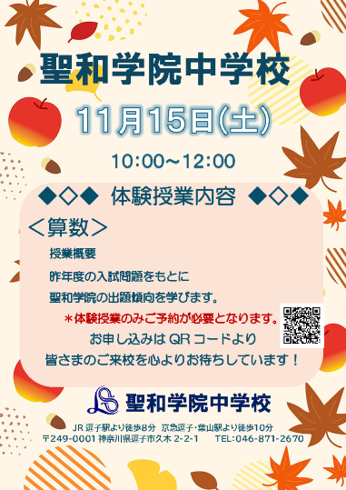 11月15日(土) 10:00〜 第7回説明会&体験授業(算数)を開催いたします。