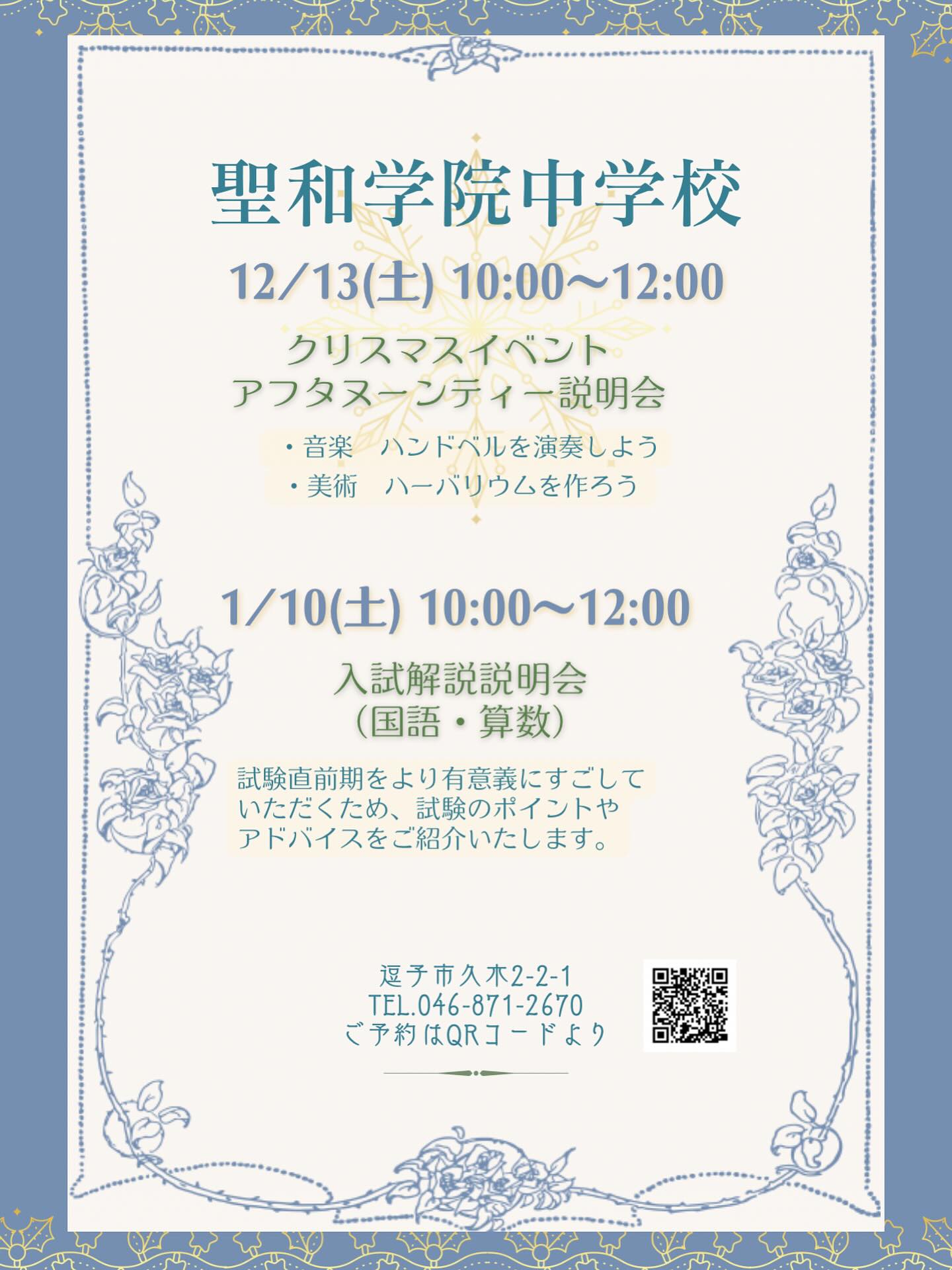 【クリスマスイベント~アフタヌーンティー説明会~】【入試解説説明会(国語・算数)】