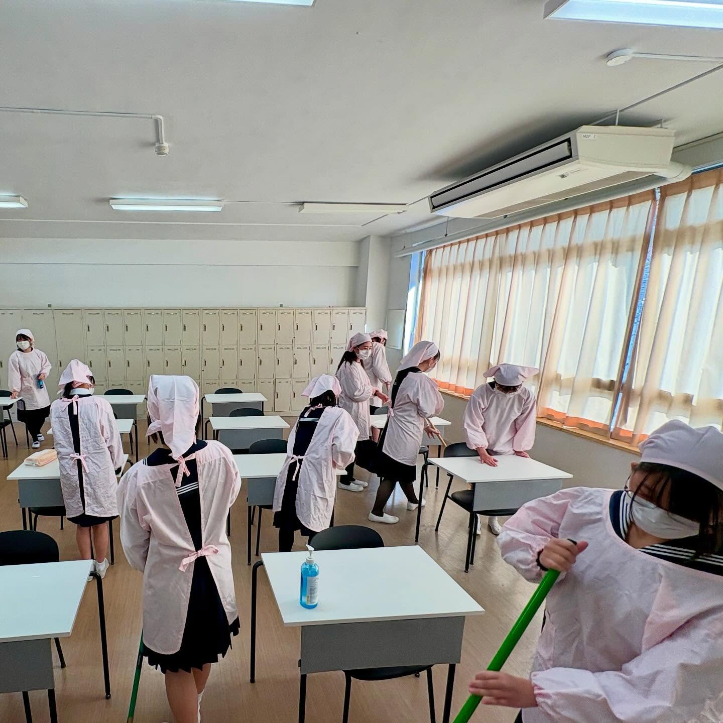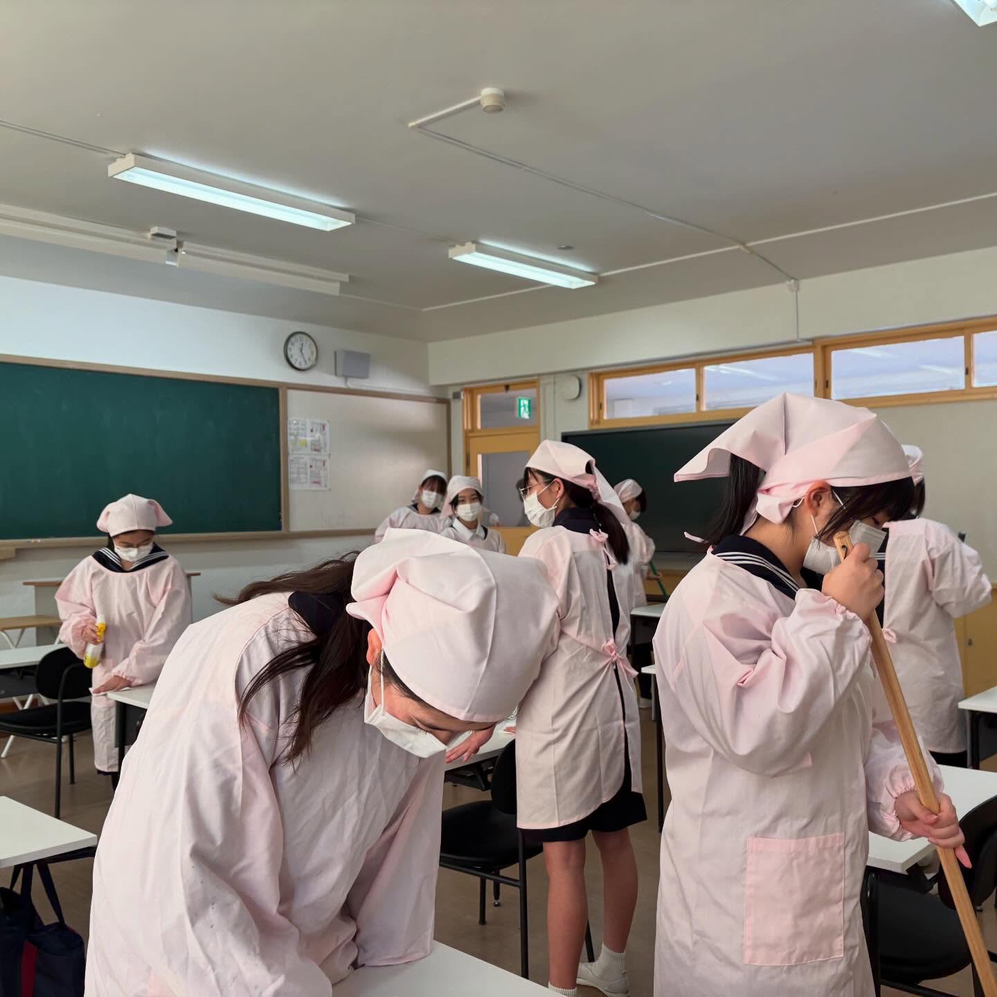 中学校入試に向け、中学生みんなで教室とお手洗いをお掃除&除菌しました。
