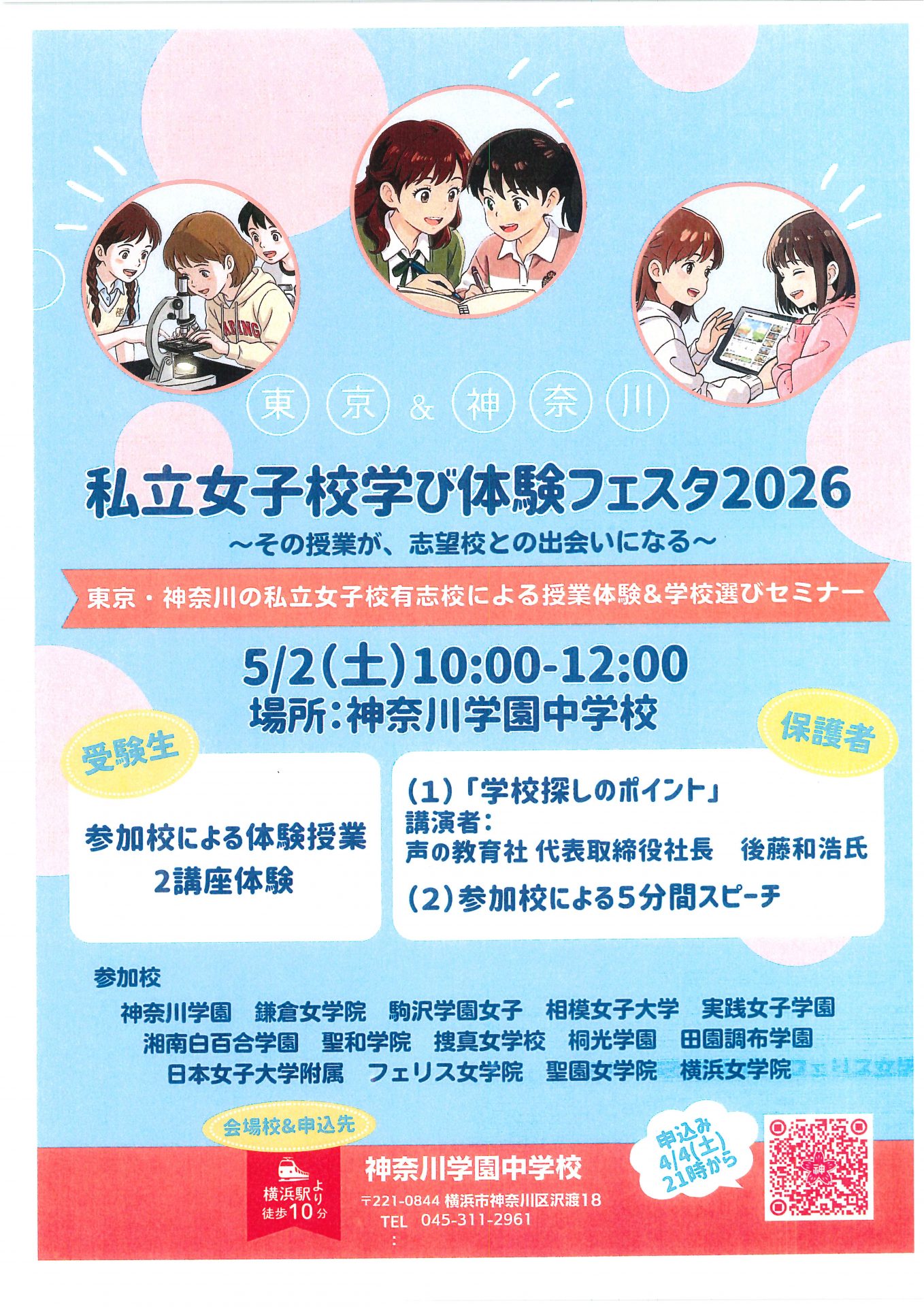東京・神奈川の私立女子校による授業体験&学校選びセミナー「私立女子校学び体験フェスタ2026」が開催され、本校も参加いたします。