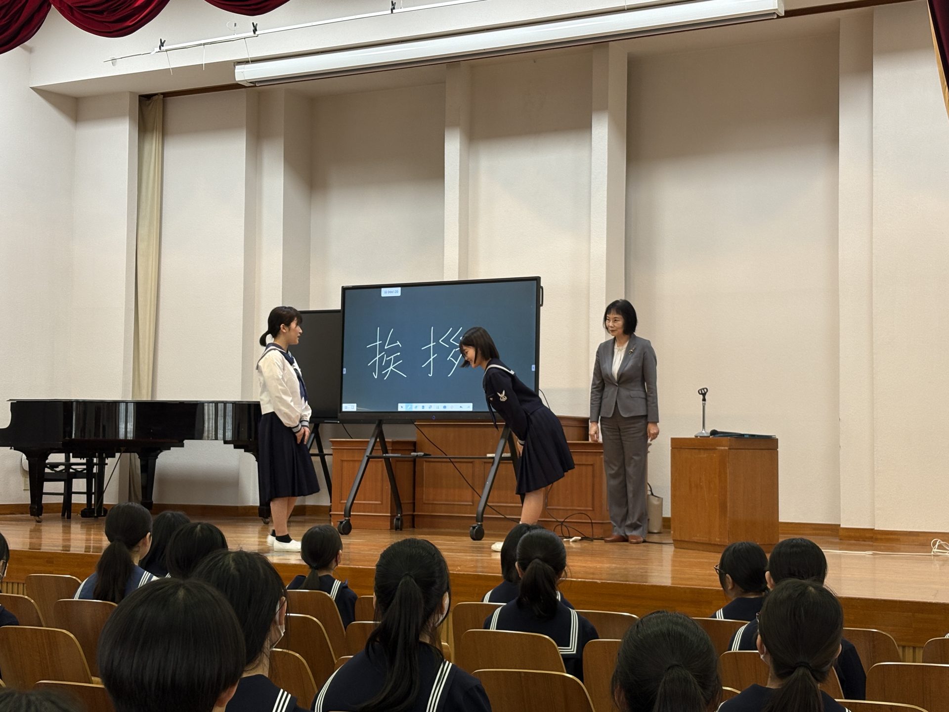 講座終了後、廊下ですれ違う生徒たちが、さっそく学んだばかりの美しい挨拶を実践している姿がとても印象的でした