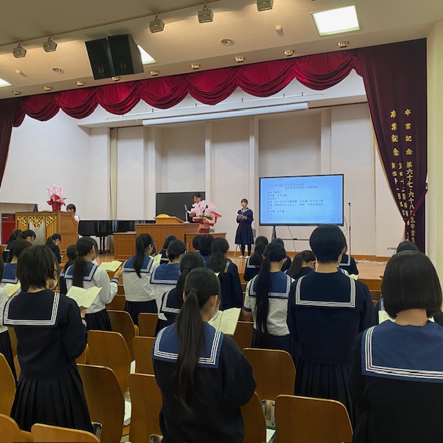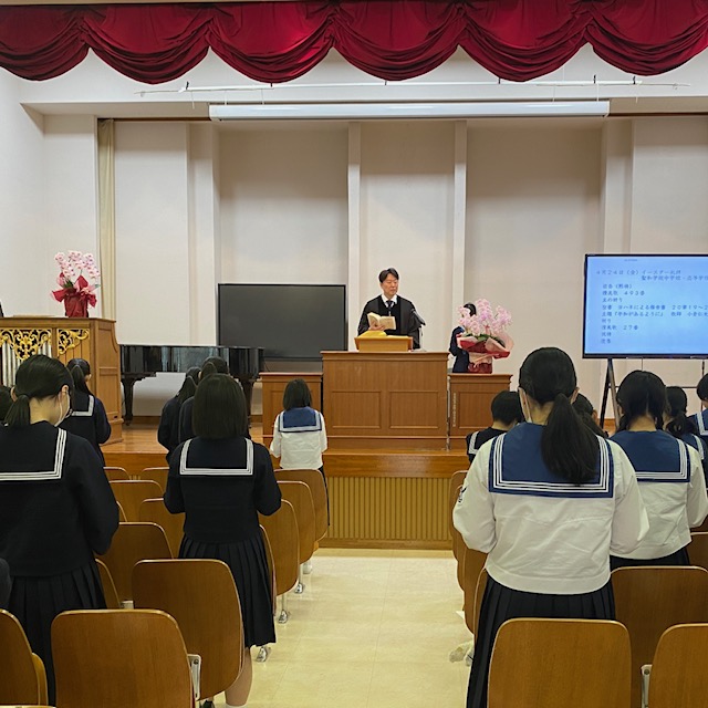 聖和学院 中学校・髙等学校にて『イースター礼拝』を執り行いました。 キリスト教における最大の祝日である「復活祭(イースター)」 礼拝では牧師先生より、暗闇から光へ、そして死から生へと至るイエス・キリストの復活についてお話をいただきました。